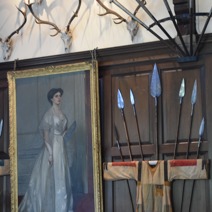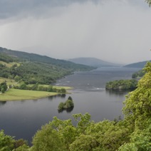 We then made our way along the winding country road to the Queens View looking west along Loch Tummel. A storm was brewing and Schiehallion was almost invisible despite being over 1000 metres high. Many photographs were taken of the View Queen Victoria and Prince Albert saw many years ago on one of their visits to Blair Castle. A group photograph was quickly taken and we boarded our coach and headed back to Pitlochry. As we stopped in the town for a few essentials where the storm caught us up, the Heavens opened and some of the group were rather wet when they returned to the coach. By the time we reached the drive up to the hotel it was running like a river due to the intense thunder storm.