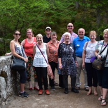 We enjoyed a light lunch and in particular the beautiful fresh cream scones, in the Castle restaurant, before heading north to the House of Bruar, an exclusive retail outlet. En route, as it was a particularly warm and sunny day I announced an alternative to the “retail therapy” a walk to the nearby Falls of Bruar. I was very surprised when the vast majority decided to join me. My Scottish accent had obviously been misunderstood and they thought I had said “200 yards” when in fact I had said “a few hundred yards”. We all managed to get to the Lower Falls where some decided they had walked far enough but the majority continued with me to the Upper Falls. On the way we witnessed a group Tomb Bombing in the waters which many expressed amazement at. The return journey, downhill, was much easier and liquid refreshments were well received at the cafe where we joined the some of the group who had given up on the retail therapy and were sitting in the sun enjoying wine.