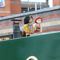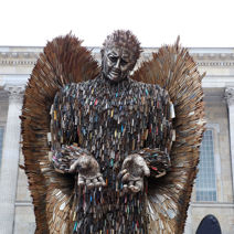 The tour continued past a family of ducks and ducklings up through the Mailbox, which is a high end shopping facility with more bars and restaurants and back onto the streets. We passed the recently opened Grand Central Station which glistened in the midday sun before reaching the impressive Chamberlain Square, which houses the Council House, the Town Hall and some excellent statues and monuments. Chamberlain Square was especially busy over the weekend as they were hosting a Velo event, a 100-mile cycling route around Birmingham and the Midlands finishing in the Square. It was also great timing as the Square was also hosting the incredible ‘Knife Angel’ sculpture which is visiting the city for a few weeks on its UK tour. Sculpture Alfie Bradley spent two years creating this impressive National Monument against Violence and Aggression. It is eight metres tall and is made from 100,000 blades seized by Police forces from across the UK. Bereaved knife-crime families have been able to inscribe their loved-ones’ names on some of the blades to remember the victims.