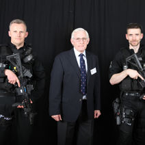 We were then joined by PC Davey, PC Knox, PC Bradley and PC Brabham from the West Midlands Police Firearms Operations Unit (FOU) who gave the guests an insight into the work undertaken by unit. The team allowed guests to handle training weapons and demonstrated the huge amount of specialist equipment carried by officers and within the Armed Response Vehicles. This input proved particularly interesting to an officer from France, who explained that French ARVs have three officers on board at all times. Given the amount of equipment that was unpacked from the ARV we struggled to see how a third officer would fit into the vehicle! All the firearms officers were excellent and gave a positive, friendly and professional image of West Midlands Police; their attendance was really appreciated by everyone at the event.