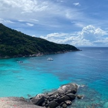 The water is crystal clear and I saw many fish. It’s quite famous for its turtles. I also rode around the island which is very mountainous and went scuba diving to the Similian Islands.