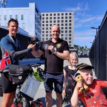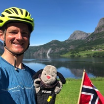The following days I experienced the most beautiful cycling ever. With the unusually delightful warm weather I cycled through the days and nights, stunning views and unforgettable scenery. But two weeks into my journey I encountered real Norwegian weather in the Lofoton Islands. Strong winds, heavy persistent rain and cold air blasted me for the next 150km. I was so glad to meet IPA member Thorben, a patrol officer from Bodo who gave me an opportunity for a hot shower at the police station and a chance to dry off and warm up. I thoroughly enjoyed Thorben’s company and hospitality. I was introduced to Pelle the famous police car and we enjoyed a beer and a tasty Sushi buffet in the evening. IPA Norway kindly arranged a place for me to stay the night instead of my cold wet tent, I was very grateful. Despite Thorben being incredibly busy at work and at home, he kindly brought me a ‘mobile’ breakfast in the morning and drove me a few kilometres south to get me started again on my journey to Trondheim and Bergen. Thank you.